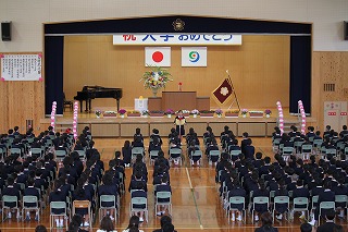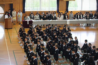 氏名発表では、元気で大きな「はい!」の返事が町小の体育館に響きました。