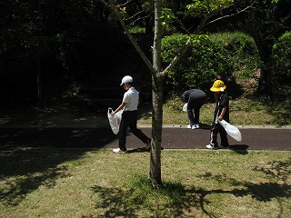 自由時間の後は、みんなで公園ゴミ拾いをしました。「来たときよりも美しく」自分たちにできることで感謝の気持ちを込めて清掃をしました。