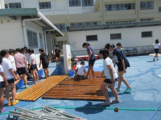 揺れが収まった後、頭部を保護しながら避難場所へと向かいました。本日は雨が降ったため、体育館に避難しました。