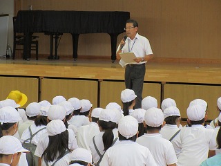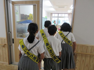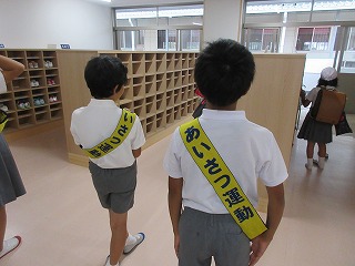朝から、その日の担当クラスの子どもたちがあいさつ運動をします。