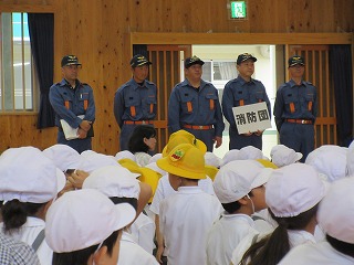 地域の消防団の方も見に来てくださり、よい避難訓練ができました。