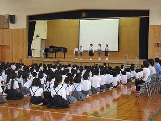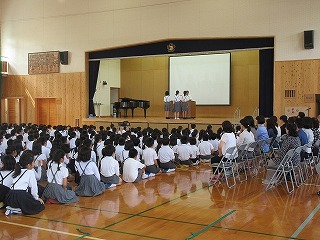 今回は、ミニバスケットボール部、ハンドボール部、音楽部が表彰されました。