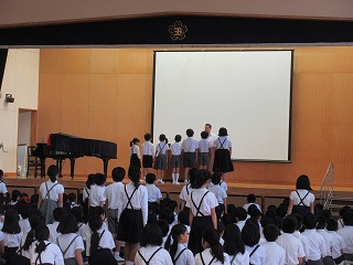 学年で1番本を読んだ子たちが表彰されました。多い子は前期で80冊以上読んでいます。