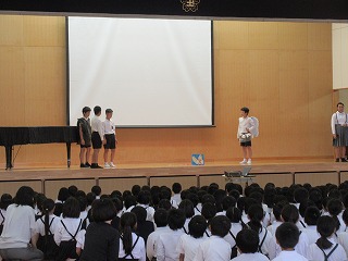 次に、前期のふりかえりについて、代表の子どもたちが発表をしました。