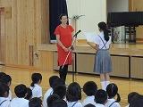 校長先生よりジェニファー先生の紹介の後、最後のご挨拶、そして代表児童からお別れのメッセージと花束贈呈がありました。