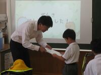 5時間目は各クラスで学級活動を行いました。中でも通知表をもらう瞬間が一番盛り上がっていました。特に1年生は初めてもらう通知表に興味津々でした。私たち職員は、前期にがんばったことや輝いていたこと、後期のめあてを示し今後の励みにしてほしいという思いで通知表を作成しています。ご家庭でお読みになったら押印後、ファイルごと学校に提出ください。
