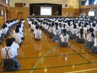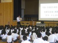 今日で前期が終わりました。終業式では校長が、前期の子供達のがんばりをスライドショーで紹介し、「今日より明日の自分が成長しているように後期もがんばりましょう。」と話をしました。