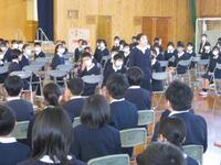 合同練習では、起立と着席のタイミングや体の向きを変えるタイミング等を合わせました。呼びかけの一部も行い、歌も歌いました。一人一人が一生懸命に歌っている姿に、感動しました。