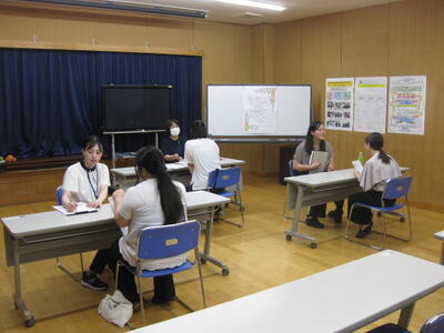 学校運営協議会委員の方々に、まず全クラスの授業参観をしていただき、その後、学校運営についての話し合いを行いました。委員の方々からは、「どのクラスも落ち着いて学習に取り組めていますね。」等、お褒めの言葉をいただきました。