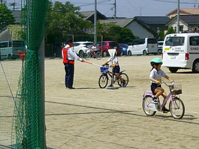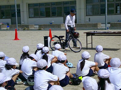 5月に入り、各学年で交通安全教室を行いました。講師に、交通安全協会や市役所の方々に来ていただいて、安全な自転車の乗り方を教えていただきました。