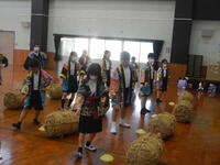 昨年度、地域学校協働活動の一環で始めた地元高瀬に伝わる民謡「肥後俵積出し唄」の踊りを玉名町小の児童たちに継承。今年も昨年同様、町小の3年生から5年生の有志16人が、11月17日(日)に行われた「玉名大俵まつり 米俵積出しの式」で「肥後俵積出し唄」の踊りを披露しました。