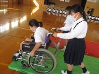 「車椅子では、マットを使った段差、パイプいすを使った細い道、そして、上り坂と下り坂を車椅子で通りました。マットを降りるときが大変でこわかったです。」