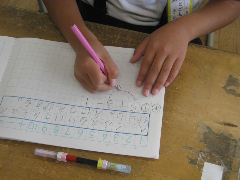「はじめにねこが5ひきバスにのっています。つぎに3びきおります。さいごに4ひきのります。ねこはなんひきになりましたか。」という課題に挑戦しました。