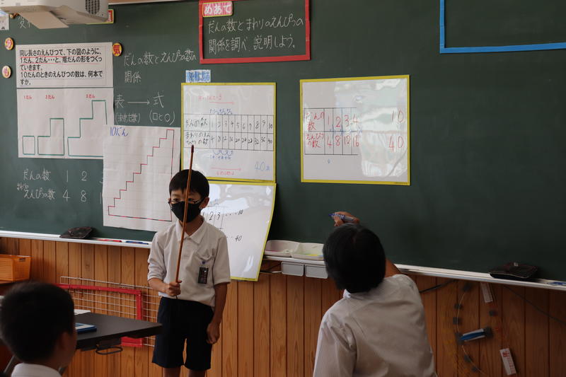 めあて だんの数とえんぴつの数の関係を調べ、説明しよう