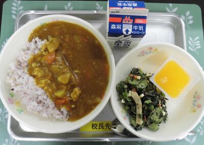 チキンカレーライスは、子ども達も大好きなメニューの1つです。ジャガイモやニンジン、玉ねぎ、お肉がたっぷり入っていて、おいしかったです。