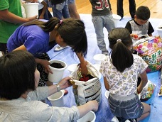 山田小学校の校長先生が、カモメの餌を用意してくださったので、みんなで挑戦しました。