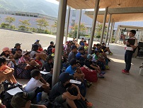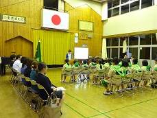 あしきた青少年の家の職員の方に、キャンプ場での注意を話していただいています。
