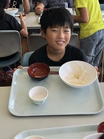 今日のお昼は、あしきた青少年の家名物の太刀魚丼でした。
