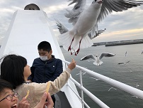 山田小学校の校長先生が、カモメの餌を用意してくださったので、みんなで挑戦しました。