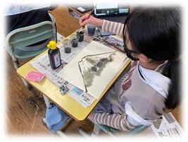 図画工作の時間に、5年生は「墨絵」に挑戦しました。