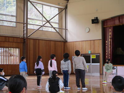 集会の内容は、「6年生が万江小でよかったと感じてくれる集会」「ソーシャルディスタンスを守ってできる集会」を意識して、代表委員会で話し合って決めました。