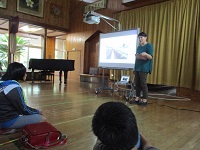 10/19の「教育の情報化」研究発表会での授業につながる内容でした。机の上に投影する新型プロジェクタや地域の方が出演される自作ビデオも活用し、児童の意欲を引き出す授業に取り組みました。
