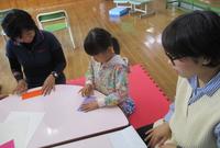 歓迎の歌、ジャンケン列車、紙飛行機づくり、紙飛行機飛ばし大会、プレゼント渡しなど、自分たちで考えたプログラムで、先生方を楽しませていました。