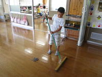 ②ベランダの落ち葉やゴミもしっかりとっている1年生と6年生