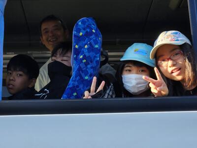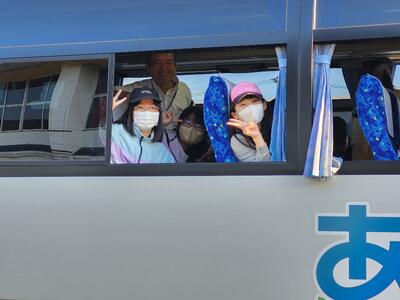 晴天の中、6年生は修学旅行に向けて、元気に出発しました。2日間が楽しみな子どもたちです。