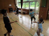子どもたちは小さくなった新聞紙から落ちないように、上手にバランスをとっていました。