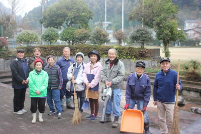 12月12日(金)に山江村ボランティア連絡協議会の方々が来られ、学校の落ち葉掃きをしていただきました。