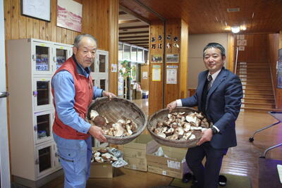 12月12日(火)に万江地区沢水の谷川様より立派な椎茸をたくさんいただきました。