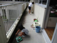 ②ベランダの落ち葉やゴミもしっかりとっている1年生と6年生