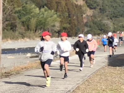 万江っ子タイムでのランニングやコースの試走を重ねて,子どもたちは記録を伸ばしています。