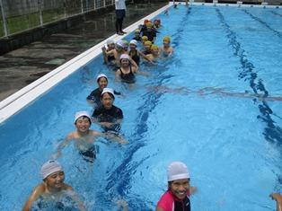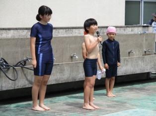 水が少し冷たく感じられましたが、子どもたちは今年のめあてを発表したり、みんなでうずを作ったりして、