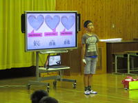 全学年人権集会では、その「なかよし宣言」に係る発表と人権を考える講話などを行い、「一人一人がかけがえのない尊い存在であること」「誰もが安心して自由に自信をもって生活できる万江小にしよう」ということなどを確認しました。