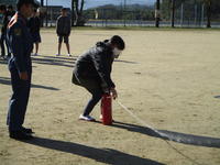 そのあと、初期消火に6年生が挑みました。