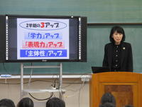 校長先生からも、ぐんぐん伸びている 子どもたちを褒めていただき、さらにワンステップ。手の届く距離に目標を 掲げていただきました。