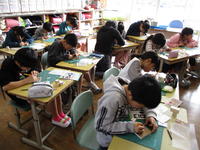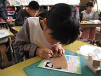 4・5年生は、午後、郵便局長様にゲストティーチャーで来ていただき、消しゴムを使ったはんこ作りをします。