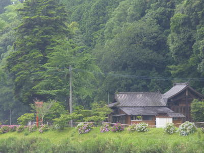 川向かいにある万江阿蘇神社周辺も、木々の緑とあじさいの花が相まって、とても幻想的な雰囲気です。