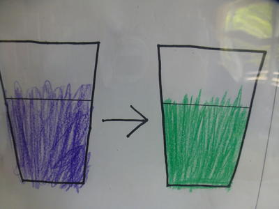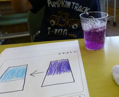 どんな色に変わったか、子どもたちのかいたプリントをご覧ください。