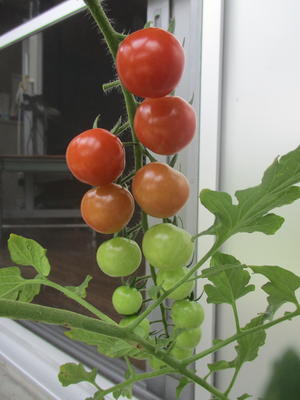 ミニトマトは、ぶどうの房かと思うほどに、たくさん実を付けています。