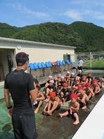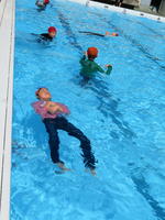また、着衣泳をして、水の事故にあったときどうすれば身を守れるか体験的学習をしました。