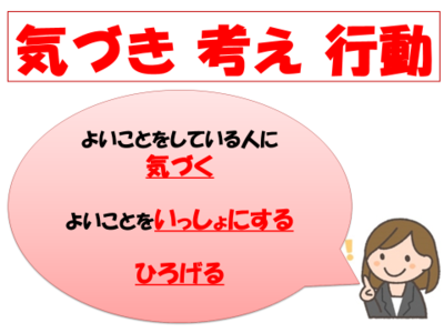 「気づき 考え 自分から行動」や「気持ちのよいあいさつ」を
