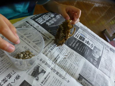1粒の種から、たくさんの新しい種ができる事に驚く1年生。