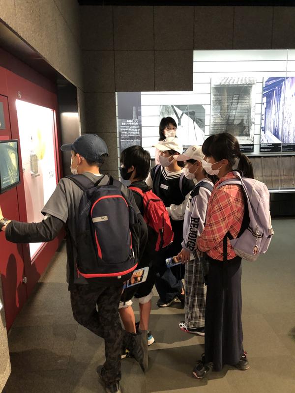 班ごとに原爆資料館の中を見学しています。戦争の悲惨さを目の当たりにして、真剣に資料を見ています。