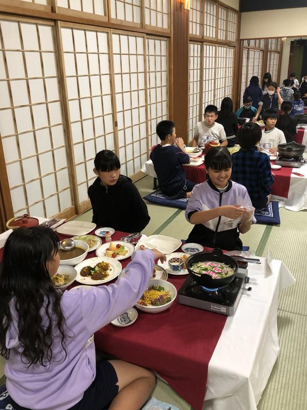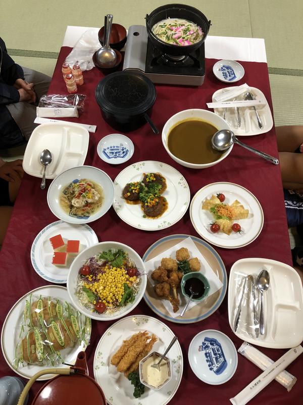 ホテルに着き、シャワーを浴びて、いよいよ夕食です。豪華なメニューに子どもたちも笑顔です。