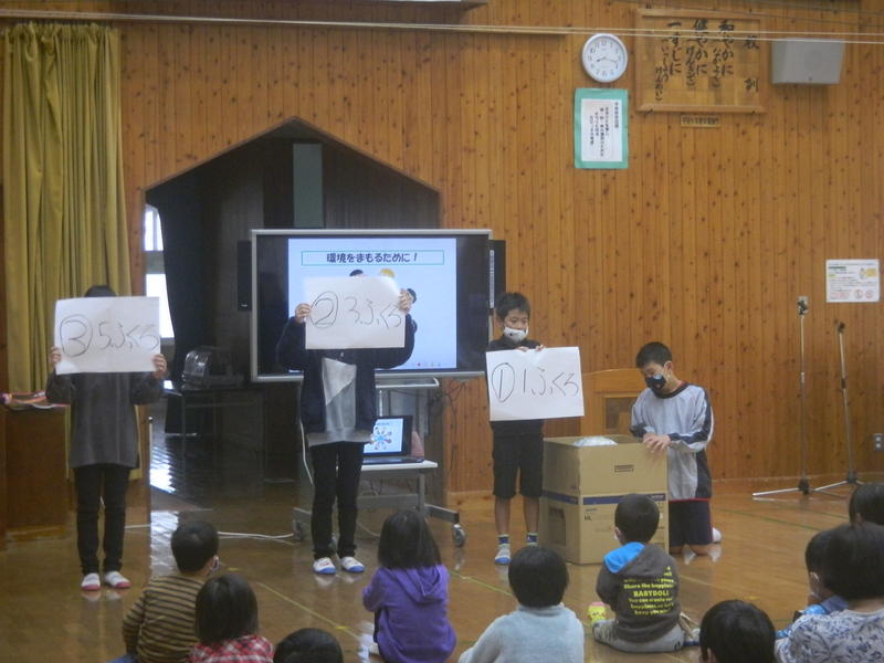 今日のさわやか集会は、環境・体育委員会の発表でした。