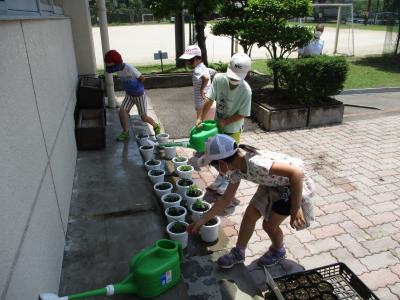 2年生は、生活科「大きくそだて わたしの野さい」の学習で、夏野菜を育てています。