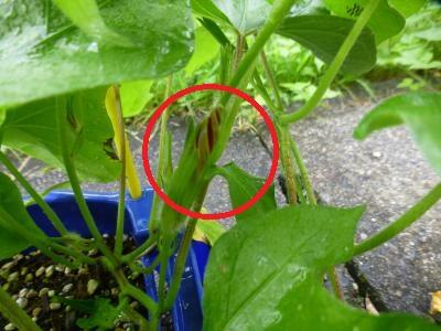 朝顔のつぼみが「ぎゅっ」とまいている状態を、子どもたちはソフトクリームみたいと表現しています。